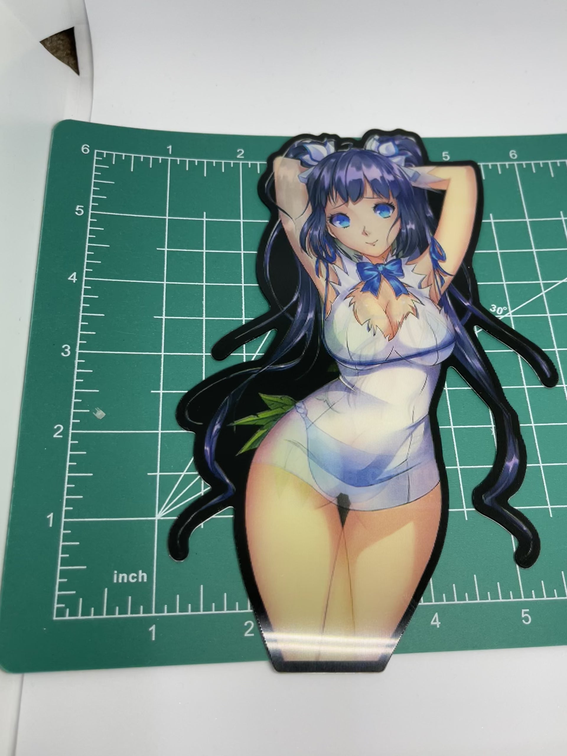 Anime lenticular stickers have an adhesive layer and a protective film for ease of use.