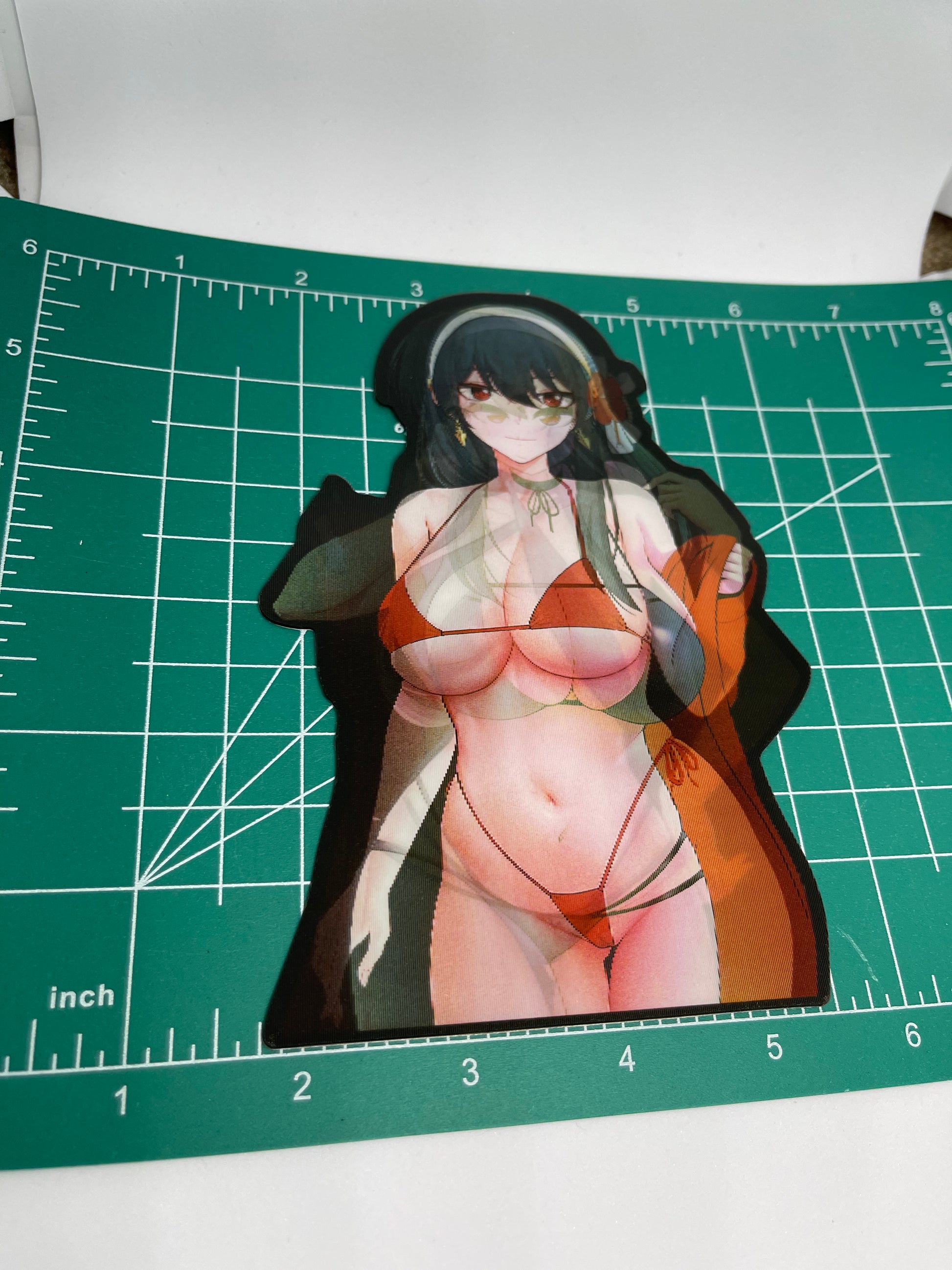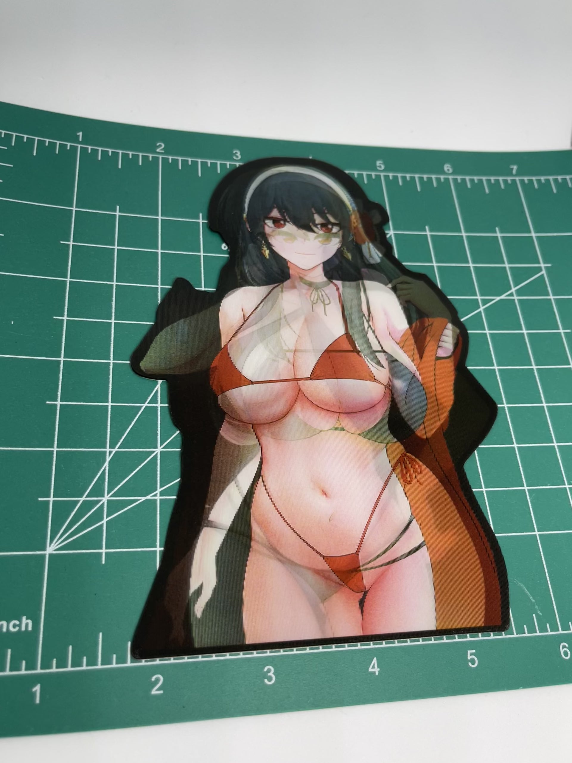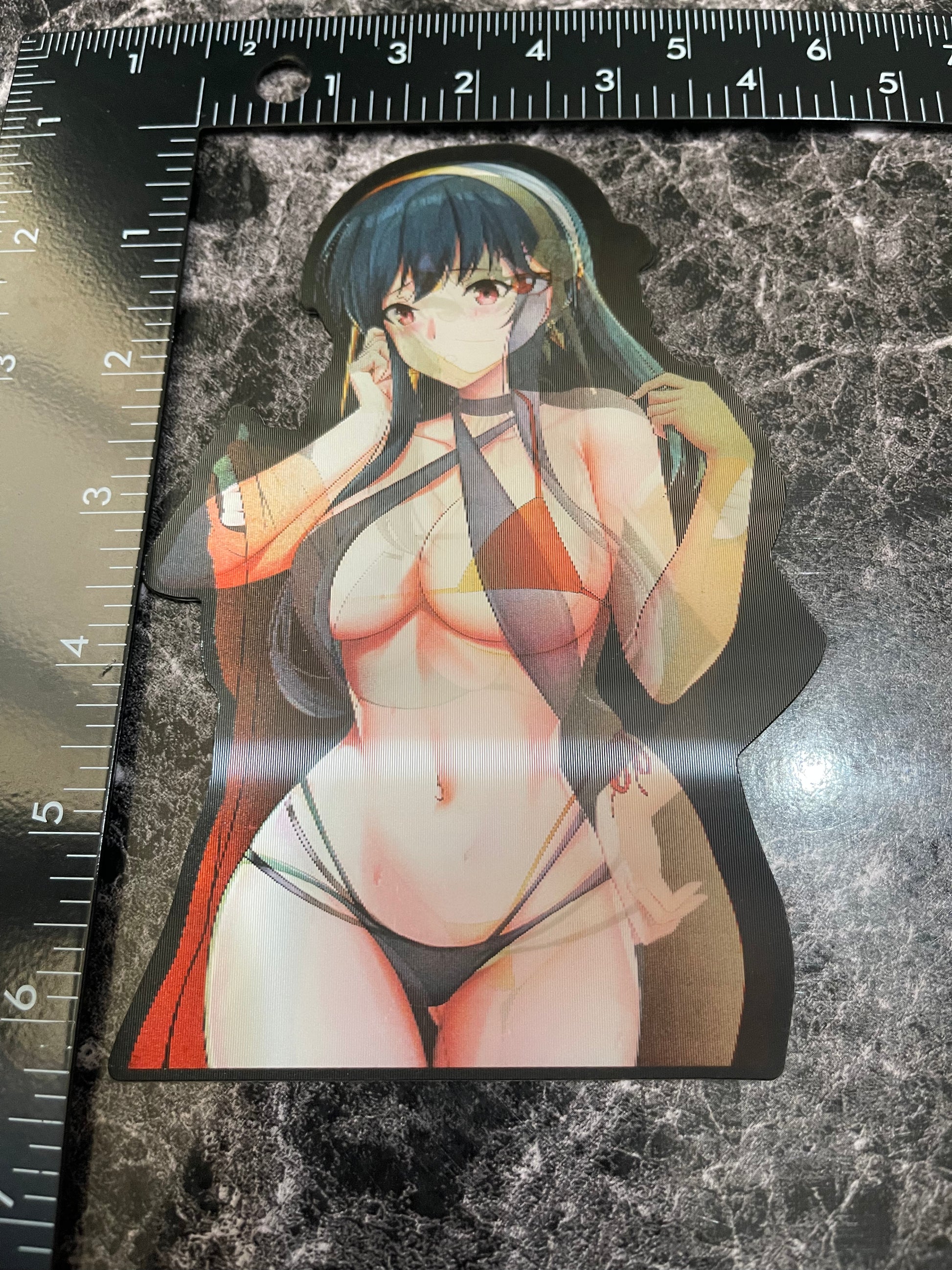 Anime lenticular stickers have an adhesive layer and a protective film for ease of use.