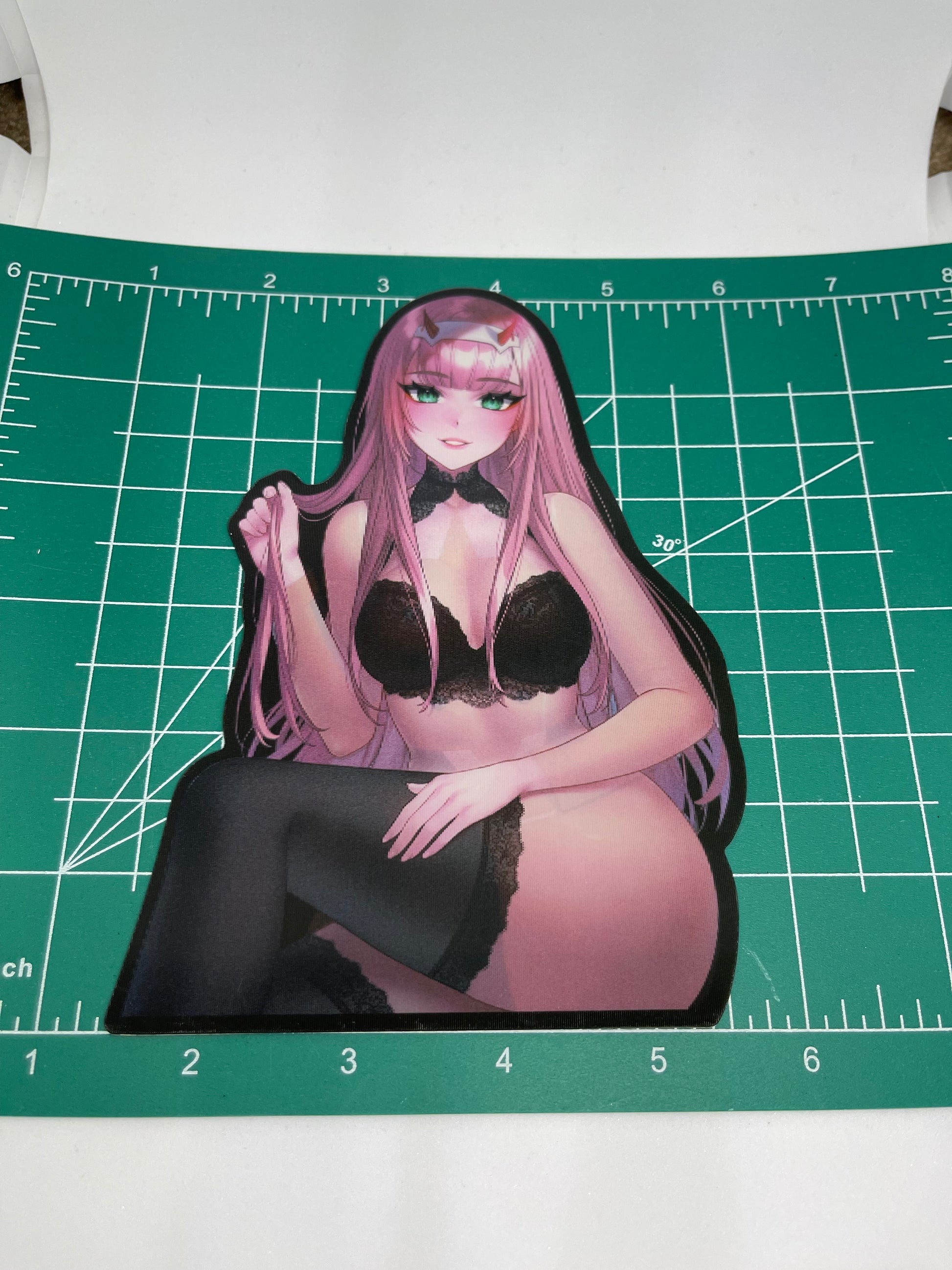 Anime lenticular stickers have an adhesive layer and a protective film for ease of use.