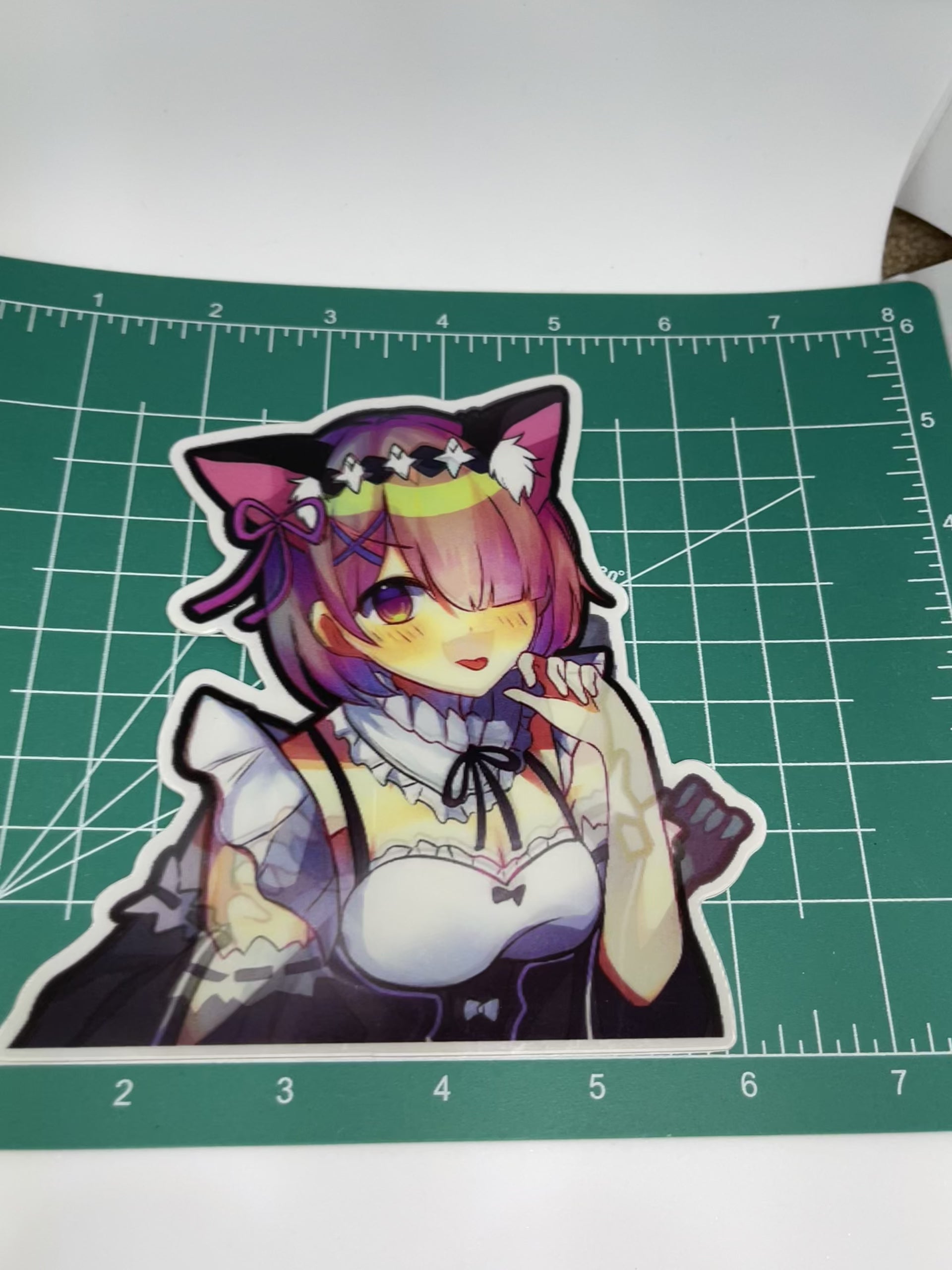 Anime lenticular stickers have an adhesive layer and a protective film for ease of use.